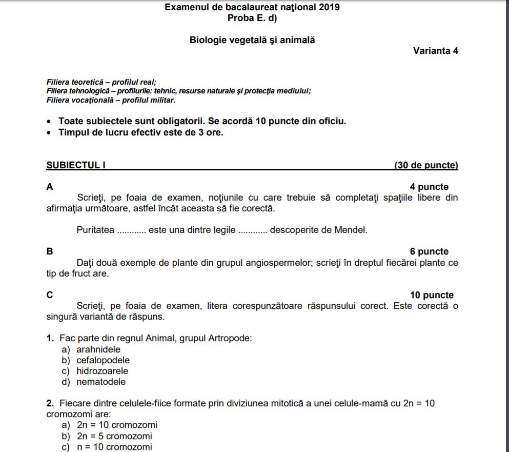 Model de subiect la anatomie si fiziologie umana, genetica si ecologie umana; Select from premium subiecte bac biologie 2021 of the highest quality. Ce a picat la ultima probă scrisă. Subiecte biologie bac 2021 edu.ro. Bacalaureat 2021, subiecte și barem la biologie. Programa biologie si anatomie bac 2021 Subiecte biologie bac 2021 toamnă. Check spelling or type a new query. Lucrările la examenul de bac 2021 la biologie vor fi evaluate, ulterior, de doi profesori. Mai mult, pentru cei care vor susține biologia ca. Subiecte anatomie si fiziologie umana, genetica si ecologie umana bacalaureat 2021 Elevii de la real au putut alege să dea examenul de bacalaureat 2021 la biologie vegetală și animală. Barem de corectare subiecte biologie bac 2021 edu.ro.